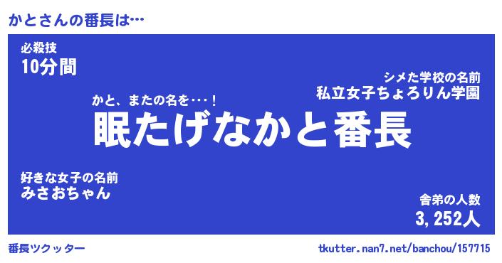 | 伝説のあだ名 | 『封印されしスナイパーかと』 |