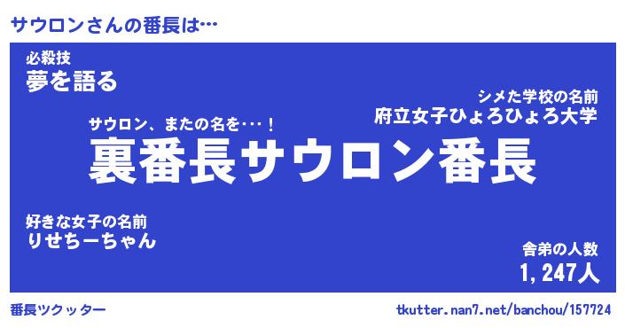 | ヒーロー風カッコイイあだ名 | 『スーパーサウロン』『銀牙騎士サウ』 |