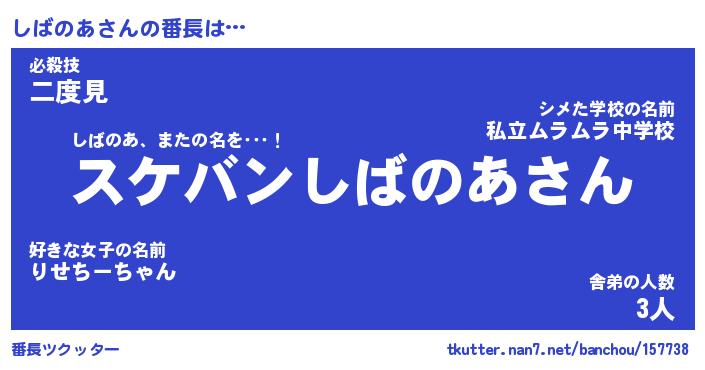 | 2回繰り返すあだ名 | 『しばしば』『ししばば』『おらおら』 |