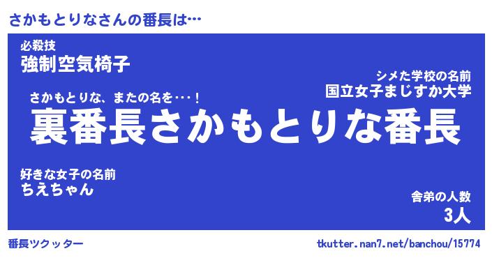 | 伝説のあだ名 | 『不死鳥のスナイパーさかもとりな』 |