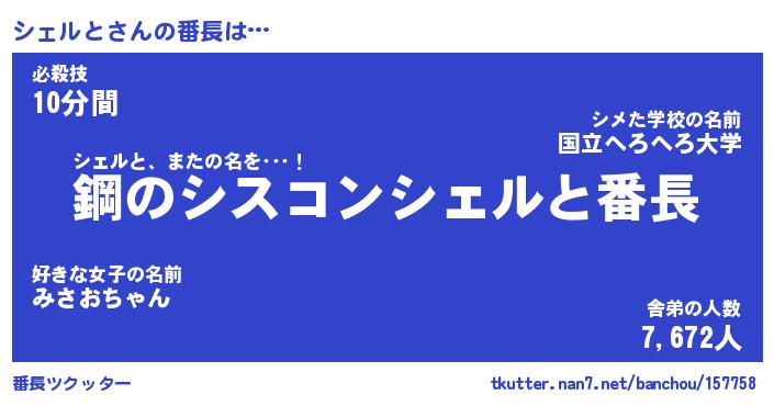 | 肩書あだ名 | 『シェルと店長』『シェルと総理大臣』 |