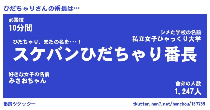 | ファンタジー風あだ名 | 『ヒダフェル』『エターナルヒダチャリー』 |