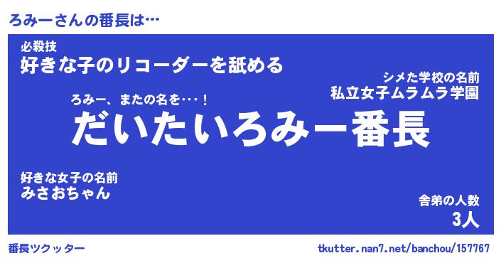 | 肩書あだ名 | 『ろみー社長令嬢』『ろみー総理大臣』 |