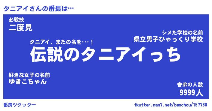 | ヒーロー風カッコイイあだ名 | 『スーパータニアイ』『天弓騎士タニ』 |