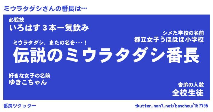 | 伝説のあだ名 | 『伝説のスナイパーミウラタダシ』 |