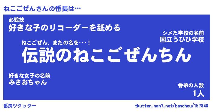 | ヒーロー風カッコイイあだ名 | 『スーパーネコゴゼン』『炎刃騎士ネコ』 |