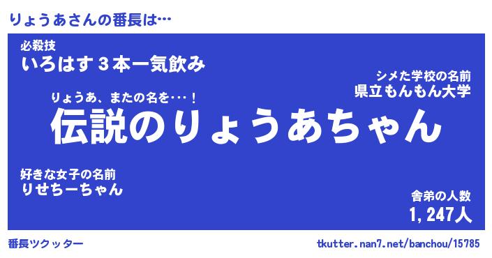 | 伝説のあだ名 | 『伝説のスナイパーりょうあ』 |