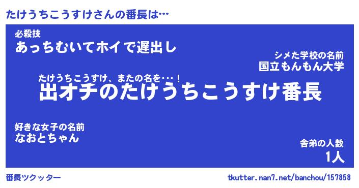 | 伝説のあだ名 | 『伝説のスナイパーたけうちこうすけ』 |