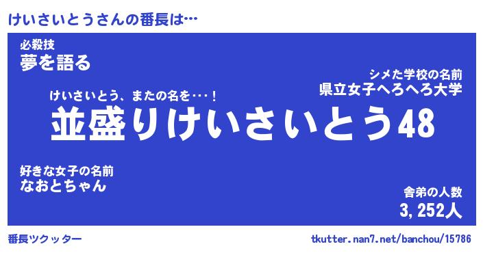 | 肩書あだ名 | 『けいさいとうCEO』『けいさいとう班長』 |