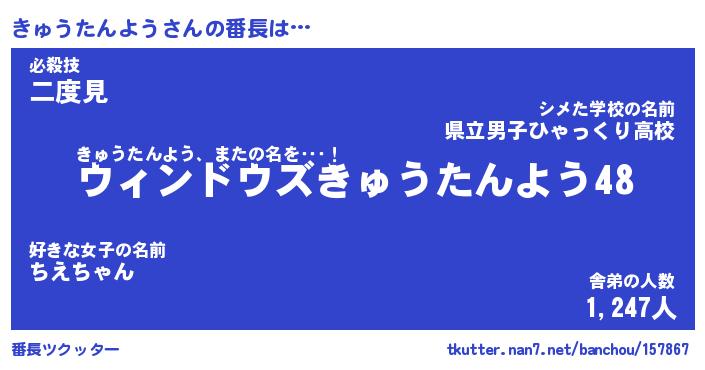| 男性向けラノベタイトル風あだ名 | 『きゅうたんようの憂鬱』 |