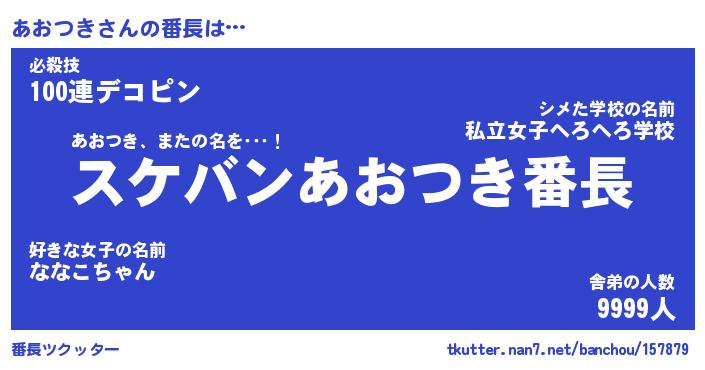 | 伝説のあだ名 | 『不死鳥のスナイパーあおつき』 |
