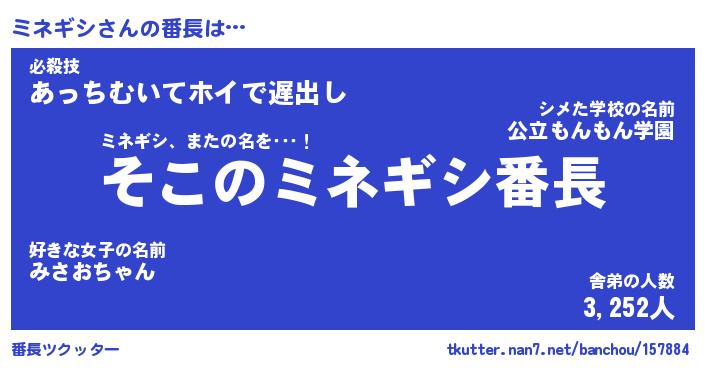 | ツイッター | ミネギシさんのツイッターID『masyumaro_man』 |