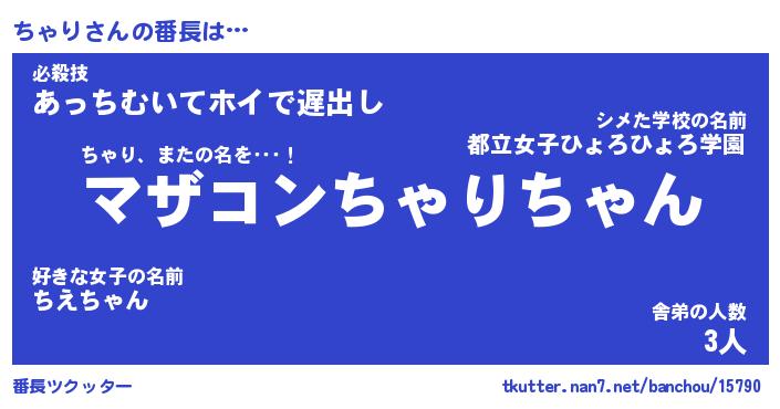 | ファンタジー風あだ名 | 『チャフェル』『エターナルチャリー』 |