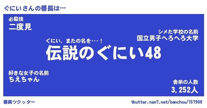 | 肩書あだ名 | 『ぐにい店長』『ぐにい大統領』 |