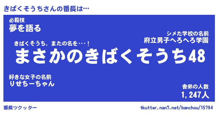 | ヘコむあだ名 | 『きばにー』『牛乳』『きばっちょ』 |