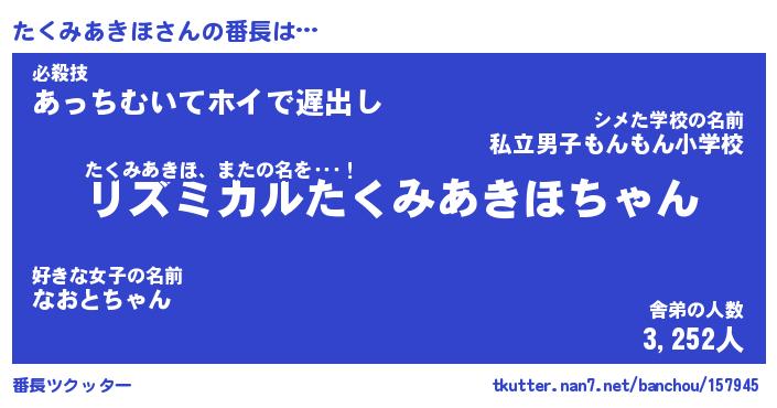 | 2回繰り返すあだ名 | 『たくたく』『たたくく』『ぎんぎん』 |