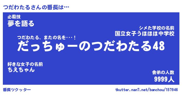| ポケモン風あだ名 | 『ツダチュウ』『ツダワダネ』 |