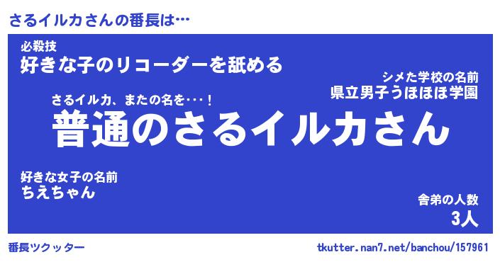 | 男性向けラノベタイトル風あだ名 | 『サルイルカアートオンライン』 |