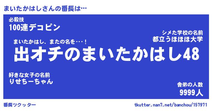 | 肩書あだ名 | 『まいたかはし店長』『まいたかはし班長』 |