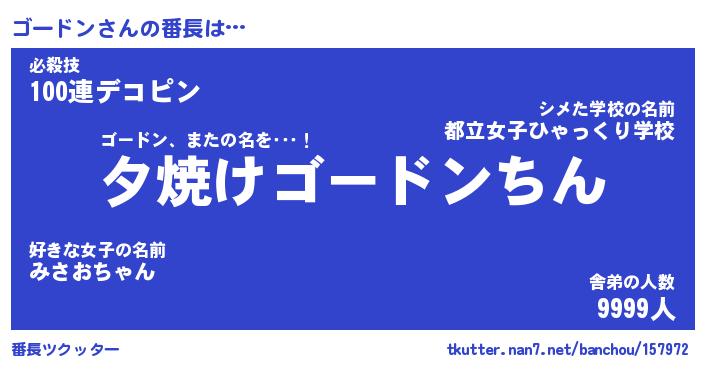 | 意味不明あだ名 | 『ペロリンゴードン』『永久保存ゴードン』 |