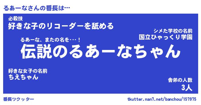 | 肩書あだ名 | 『るあーな社長令嬢』『るあーな国家主席』 |