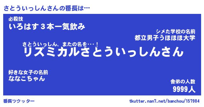 | 伝説のあだ名 | 『伝説のスナイパーさとういっしん』 |