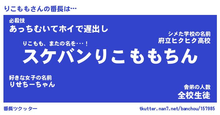 | 伝説のあだ名 | 『不死鳥のスナイパーりこもも』 |