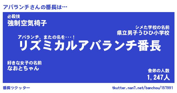 | ヒーロー風カッコイイあだ名 | 『スーパーアバランチ』『銀牙騎士アバ』 |