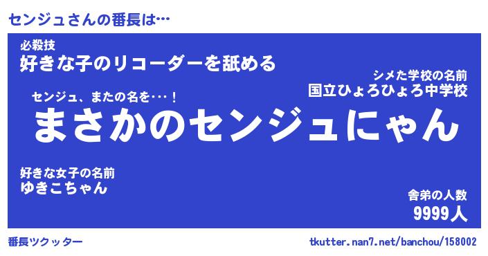 | 肩書あだ名 | 『センジュCEO』『センジュ国家主席』 |