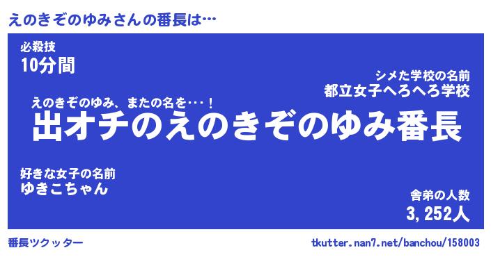 | 伝説のあだ名 | 『伝説のスナイパーえのきぞのゆみ』 |
