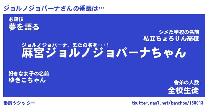 | 欧米人風あだ名 | 『マイケルジョルノジョバーナ』 |