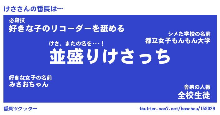 | ポケモン風あだ名 | 『ケサチュウ』『ケサダネ』『ヒケサ』 |