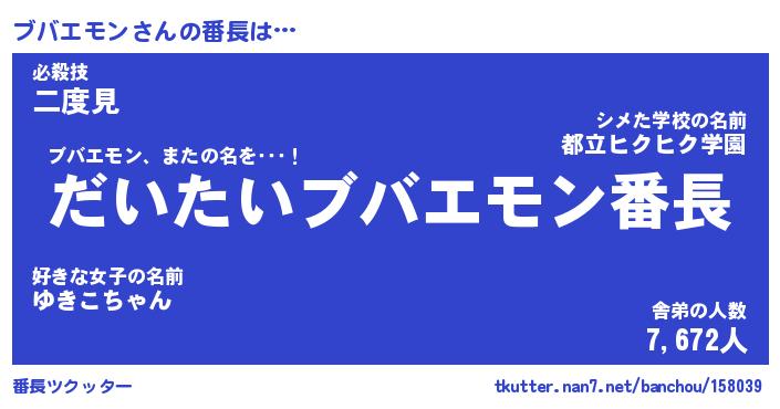 | 肩書あだ名 | 『ブバエモン社長』『ブバエモン総理大臣』 |