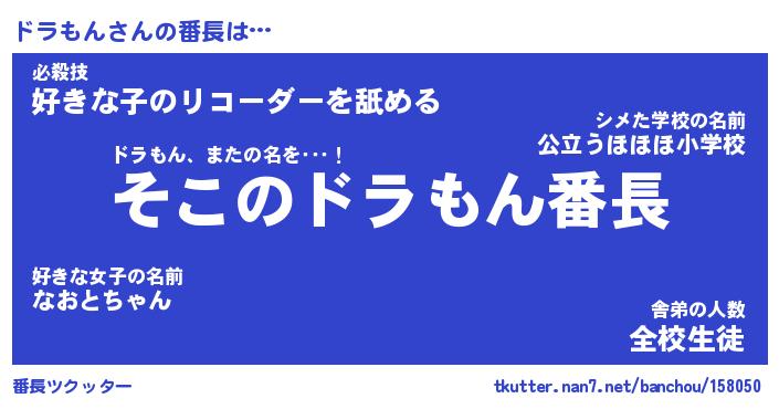 | 意味不明あだ名 | 『ペロリンドラもん』『永久保存ドラもん』 |
