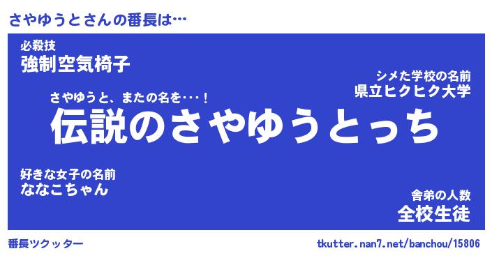 | ファンタジー風あだ名 | 『サヤフェル』『エターナルサヤユウトー』 |