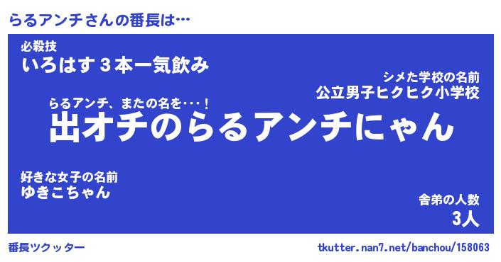 | ヘコむあだ名 | 『らるにゅー』『なまこ酢』『らるを』 |