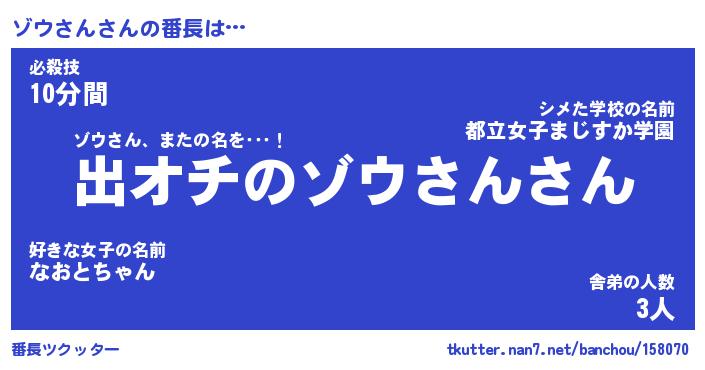 | ピコ太郎風あだ名 | 『ゾコ八郎』『ピゾ二郎』『ゾウ史郎』 |