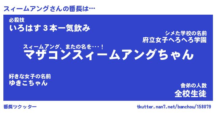 | ヘコむあだ名 | 『スィにー』『牛乳』『スィを』 |