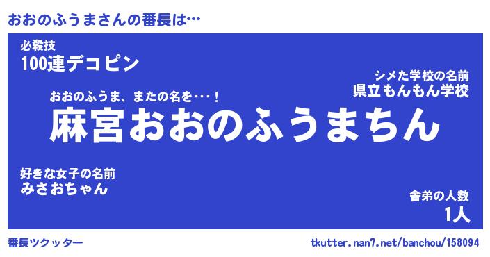 | 伝説のあだ名 | 『不死鳥の竜騎士おおのふうま』 |