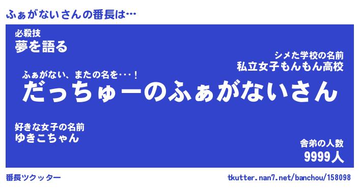 | ピコ太郎風あだ名 | 『フコ二郎』『ピフ五郎』『ファ二郎』 |
