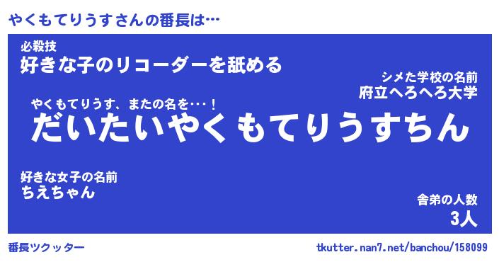 | 肩書あだ名 | 『やくもてりうすCEO』 |