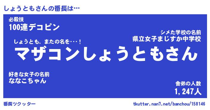 | 伝説のあだ名 | 『封印されしスナイパーしょうとも』 |