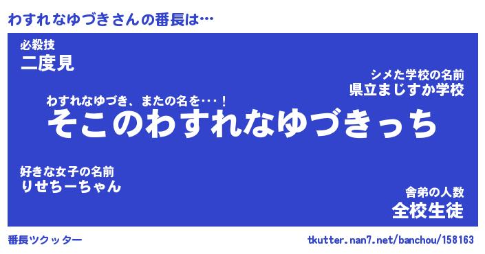 | 恥ずかしいあだ名 | 『プリティーわすれなゆづき』『わすちん』 |