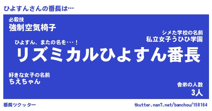 | ファンタジー風あだ名 | 『ヒヨフェル』『エターナルヒヨスンー』 |