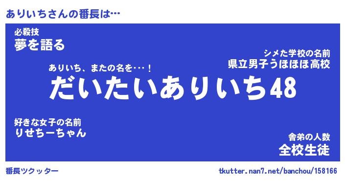 | 意味不明あだ名 | 『ペロリンありいち』『永久保存ありいち』 |