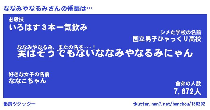 | 意味不明あだ名 | 『ペロリンななみやなるみ』 |