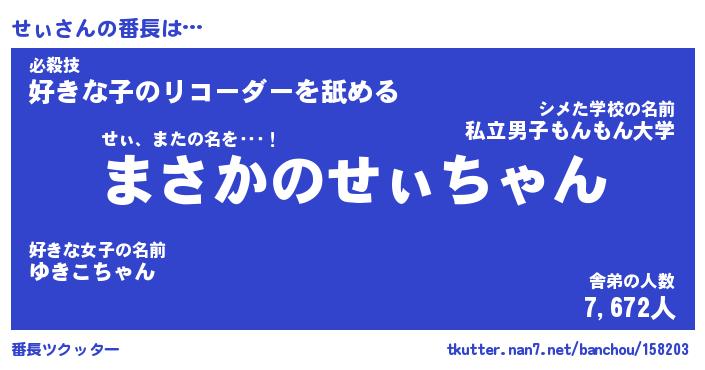 | 肩書あだ名 | 『せぃCEO』『せぃ大統領』『せぃ校長』 |