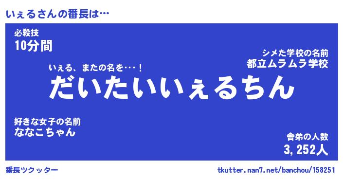 | ピコ太郎風あだ名 | 『イコ次郎』『ピイ一郎』『イェ一郎』 |