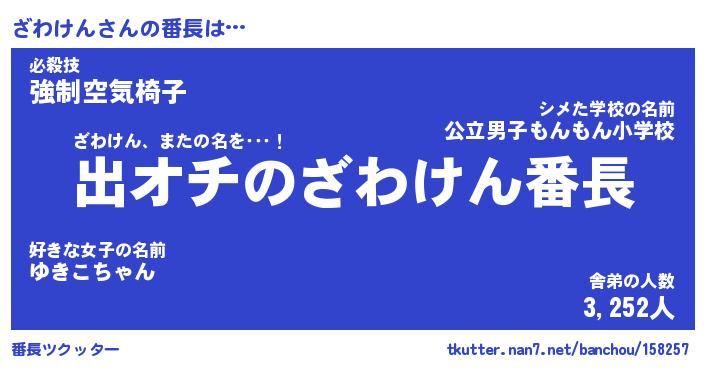 | 意味不明あだ名 | 『ペロリンざわけん』『永久保存ざわけん』 |