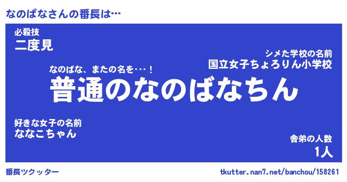 | 肩書あだ名 | 『なのばな社長令嬢』『なのばな総理大臣』 |